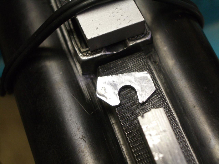 Die bestehenden Montageteile haben sich aufgrund von schlechten Lötstellen gelöst und mussten neu eingelötet werden. Zusätzlich wurde ein zu grosser Lötspalt mit einer Einlage behoben.