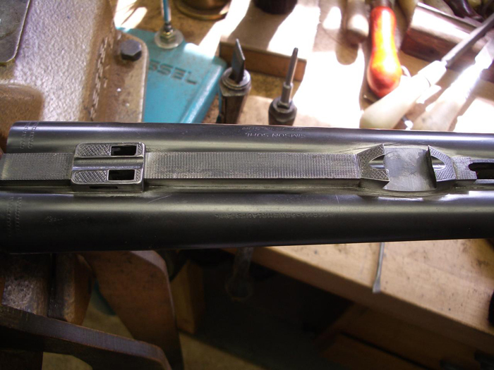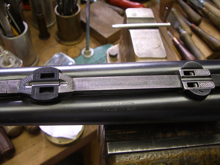 Für das zusätzlich zu montierende ZF war ein neuer Vorderfuss mit Platte sowie ein neuer Hinterfuss nötig. Das Aimpoint ist in die gleichen Montagebasen eingepasst und kann wechselseitig zum ZF verwendet werden.